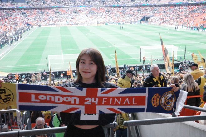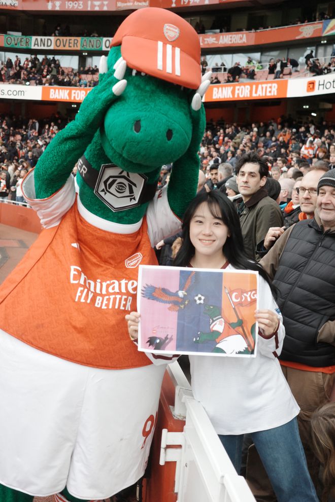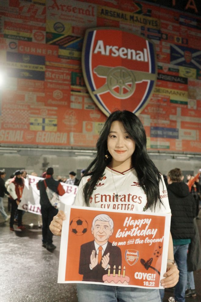 A:我叫菲菲,是一名95后女球迷,出生在山东济南。我的俱乐部主队是阿森纳,因为现在在伦敦工作,所以每到世界杯或大赛,我也会选择支持英格兰。我和足球的最初记忆其实非常生活化。小时候的夏夜,会跟着爸爸去济南的烧烤摊看世界杯,老电视、小板凳,还有一群陌生却因为足球迅速热络起来的大人们。现在回想起来,那些画面都还是特别珍贵的记忆。中学时,班里大部分同学都是皇马和C罗的球迷,每天都能听到朋友们聊足球,我们也会一起去看山东泰山的主场比赛。上大学之后,我更多是看世界杯和欧洲杯,不太会熬夜追联赛。直到去英国读书,才和室友们一起关注英超的各种动向。但真正的转折点,是去年正式来到伦敦工作,我才开始尽量一场不落地走进球场支持自己的主队。截至目前,我已经在现场看过45场比赛,这种连接是过去十几年隔着屏幕无法比拟的。我想我这辈子都会是阿森纳球迷了。